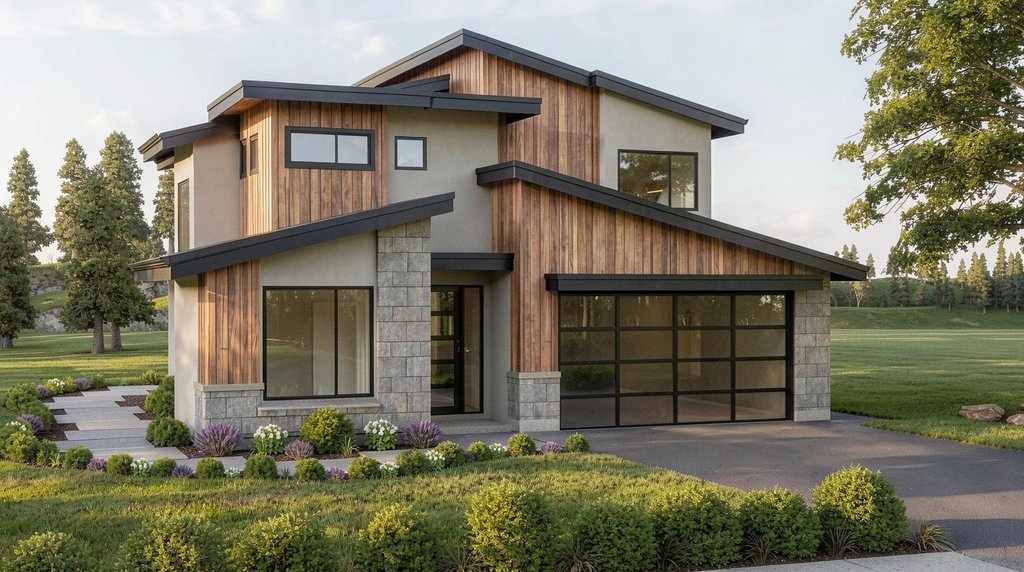 Exterior Wall Finish: Stucco & Vertical Siding