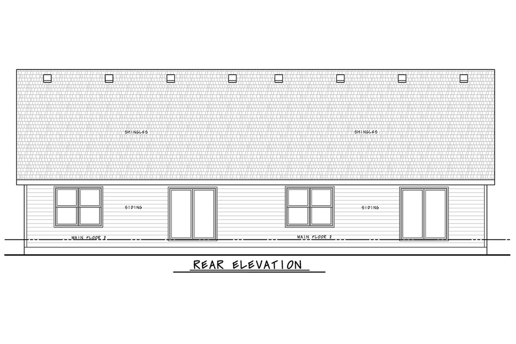 - Exterior Elevations: Drafted at 1/4" scale for the front and 1/8" scale for the rear and sides. All elevations are noted and an aerial view of the roof is provided, showing all hips, valleys and ridges.