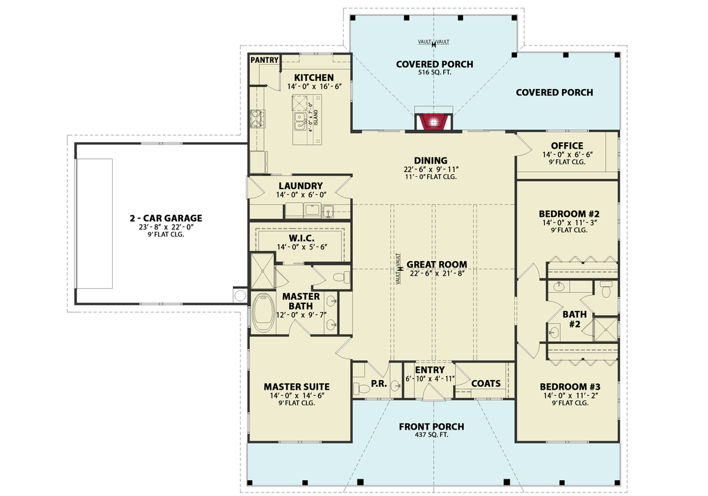 Main Ceiling: 9'