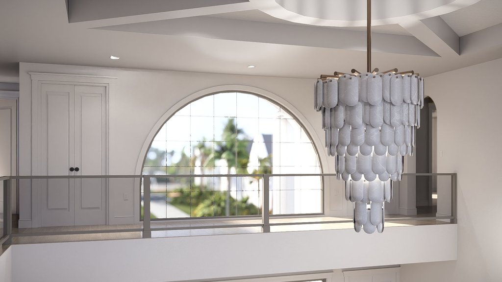 Ceiling Details: The master bedroom and family room have 2-story cathedral ceilings. The great room has a 2-story ceiling with a tray. The breakfast nook has a 14'-0" ceiling. Bedrooms 2, 3, 4, 5, and 6 have tray ceilings.