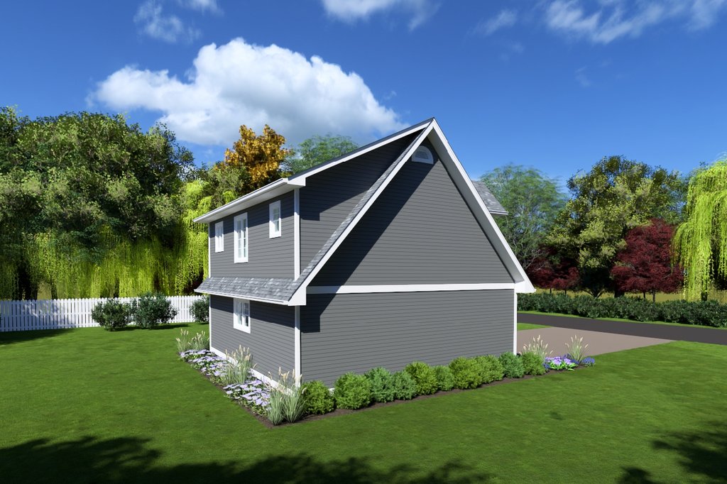- Exterior Elevations: Views of the home from all four sides showing exterior materials, roof slope, ridge heights, siding and trim notes.